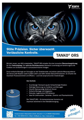 With the TANKO® ORS, AWH offers an innovative sensor solution for monitoring fast-rotating surge cleaners in process engineering plants. The sensor sets new standards for process reliability and efficiency, especially for the food, beverage, chemical, and pharmaceutical industries.